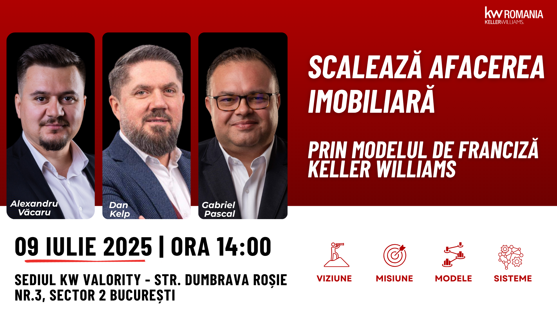 Înțelegi ce implică parteneriatul cu Keller Williams, ce beneficii ai concret și care sunt pașii pentru a deschide un birou KW în orașul tău.